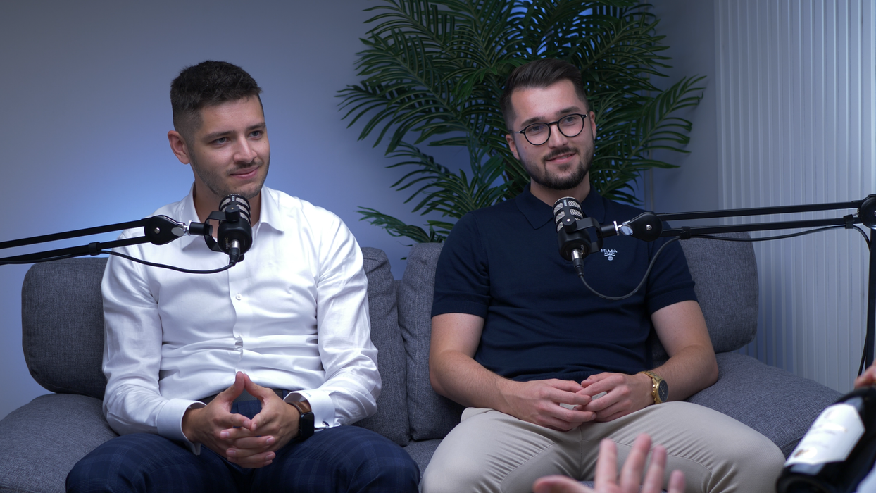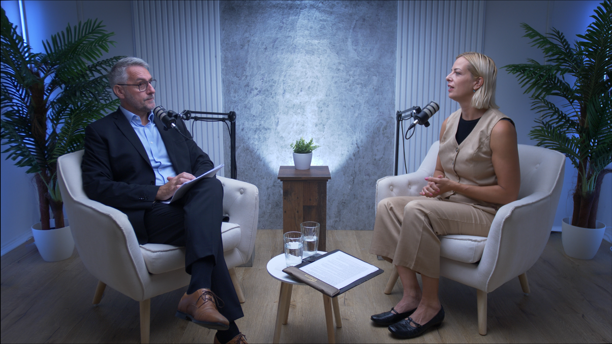 Dvě elegantní podcastová studia ve variantách křesla nebo stůl.